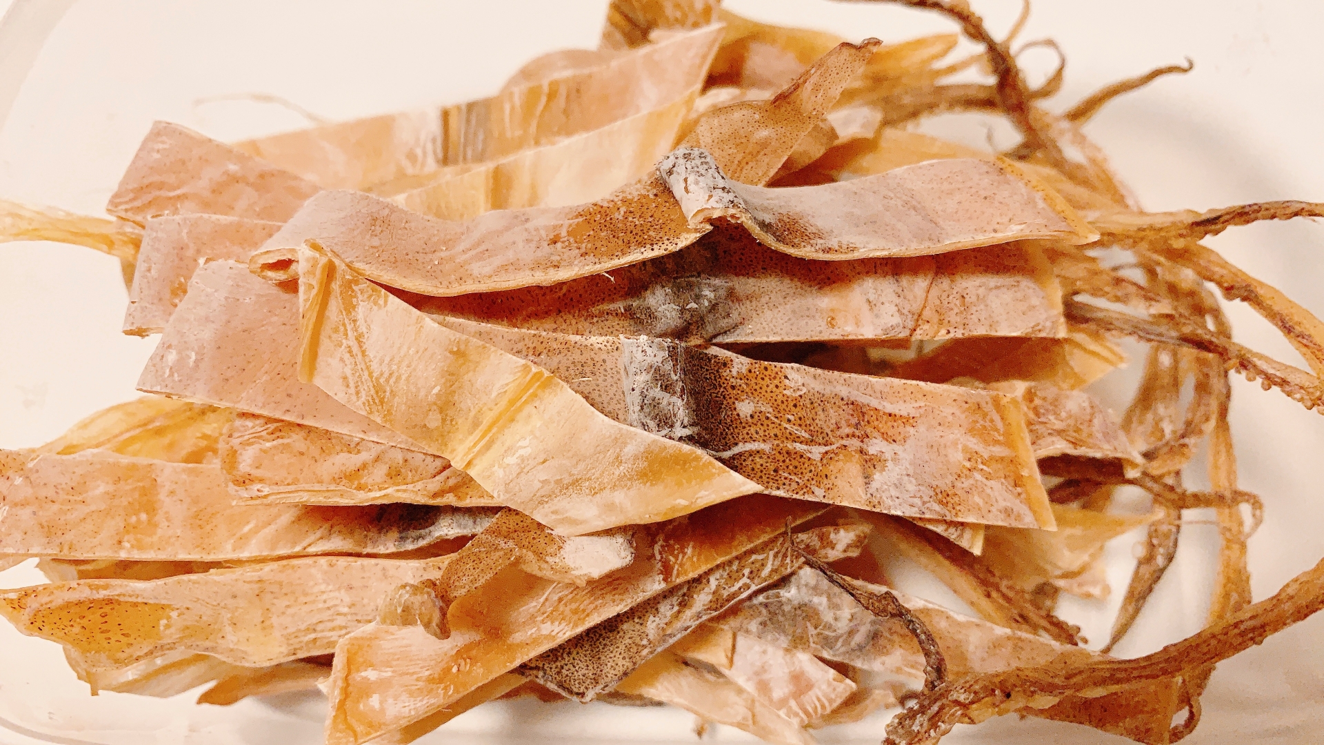 마른 오징어와 같이 질기고 딱딱한 음시을 씹는 것이나,