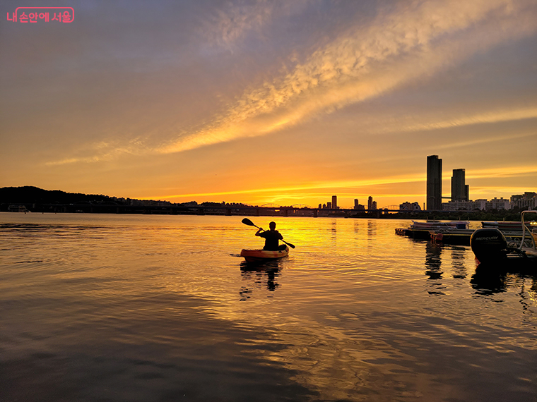 한강에 패들보드 띄워놓고 그 위에서 진행하는 수상 요가 프로그램이다. 집중력이 요구되는 요가 수련을 통해 최고의 힐링 시간을 선사할 것으로 기대된다.