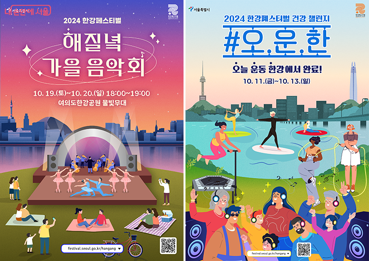 서울시는 건강한 휴식과 신선한 즐거움으로 구성된 사계절 축제 2024 한강페스티벌_가을 편을 10월 11일부터 20일까지 열흘간 한강 수상과 8개 한강공원 일대에서 개최한다. 가을편 주제는 ‘건강한 한강 산책’으로 여름내 지친 몸과 마음의 건강을 되찾을 수 있는 처방과 치유의 프로그램 16개가 운영된다.