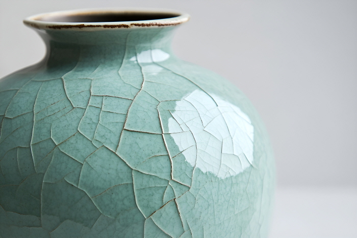 이는 도자기의 표면이 유약에 의해 자연스럽게 푸르고 청아한 색을 띠게 되는 효과입니다.