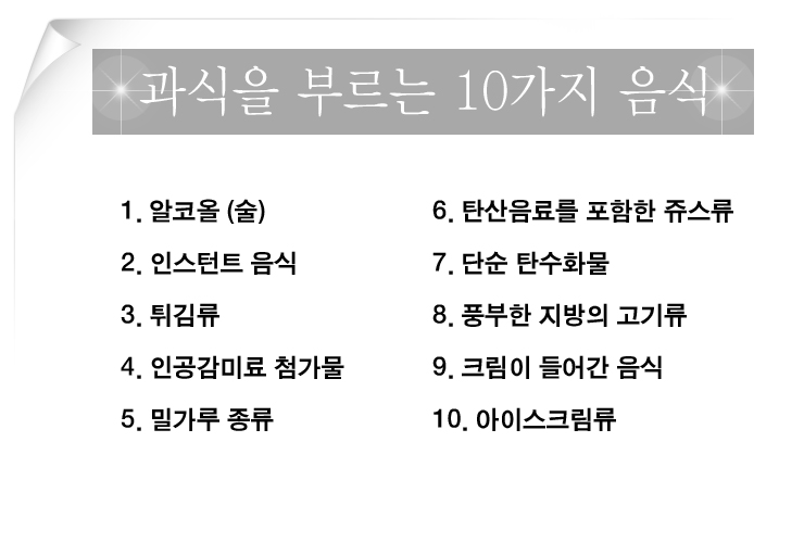과식을 부르는 음식 10가지는?