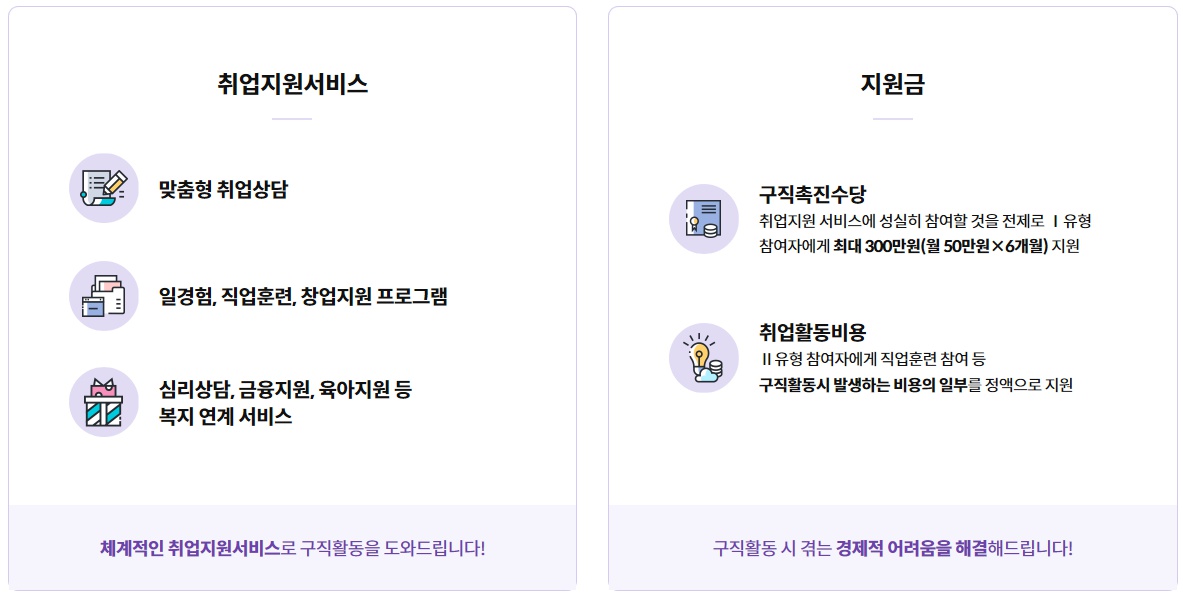 Ⅰ유형(저소득층)은 취업지원 서비스와 소득지원(구직촉진수당)을 제공,