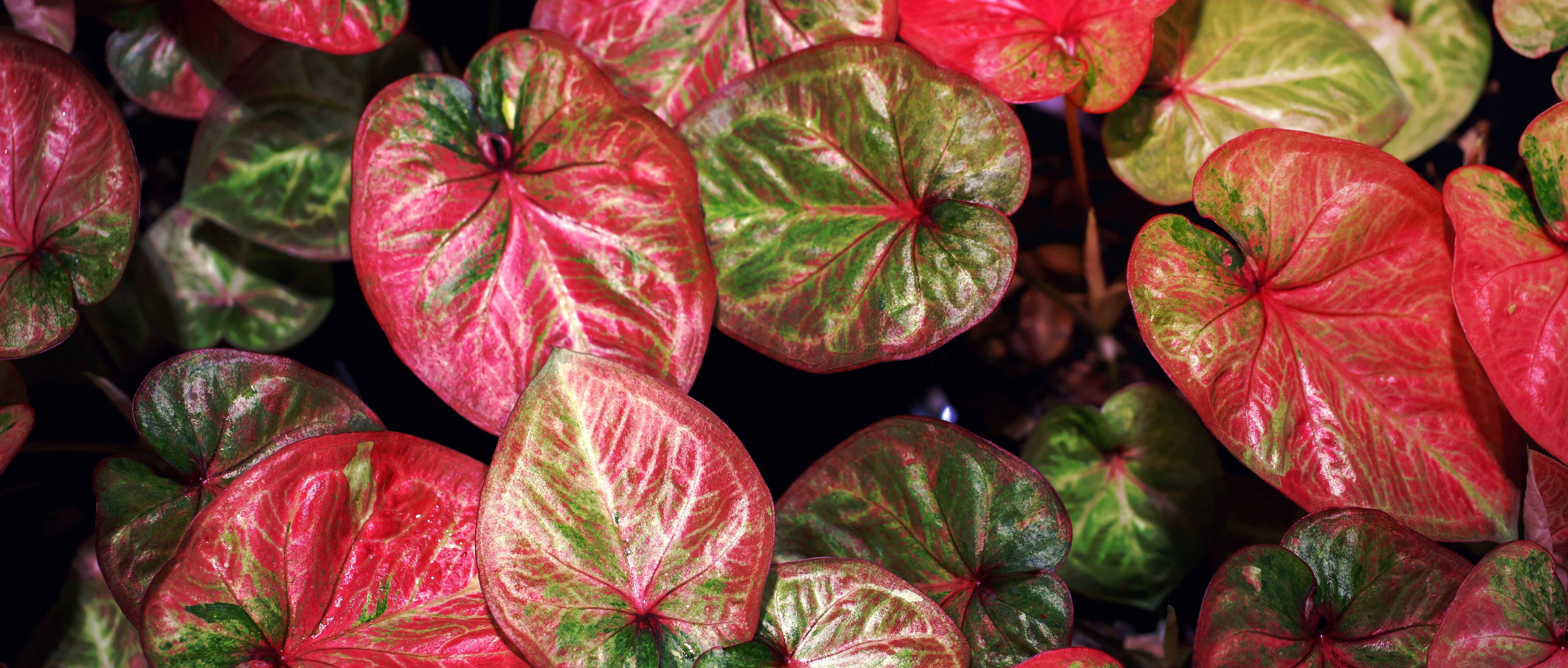| 특징 | ㆍ 칼라디움은 다양한 색상과 무늬를 가진 잎이 매우 아름다운 식물입니다. ㆍ 그늘에서 잘 자라며, 특히 간접적인 빛 아래에서 더욱 선명한 색상을 띱니다. ㆍ 물을 많이 필요로 하며, 습도 유지가 중요합니다. |