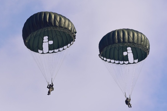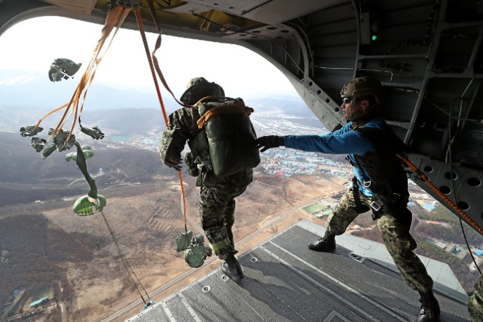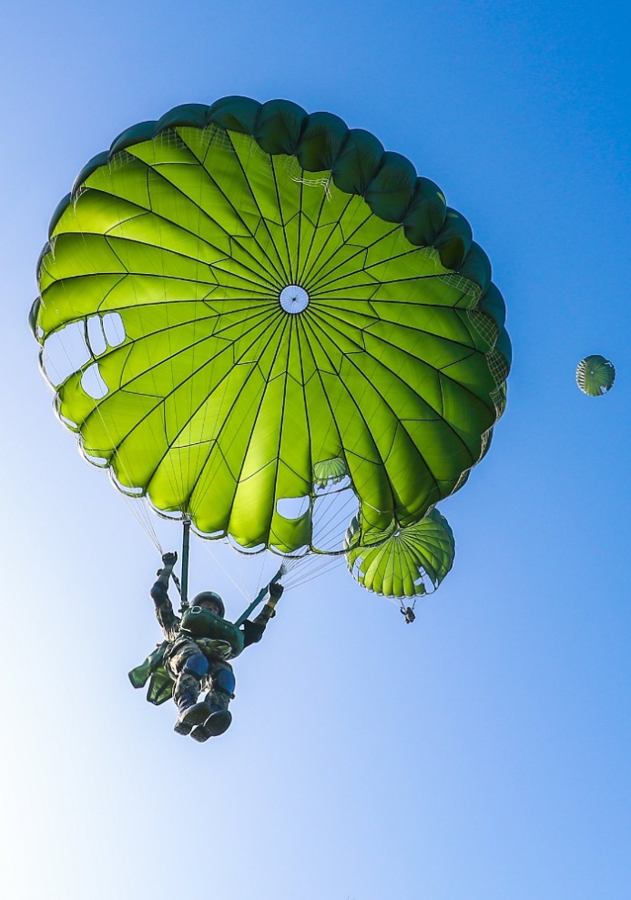 이들은 낙하산 하나에 의지한 채 과감히 창공에 몸을 날려 목표지점에 정확하게 착지하는 모습을 보여줬습니다.
