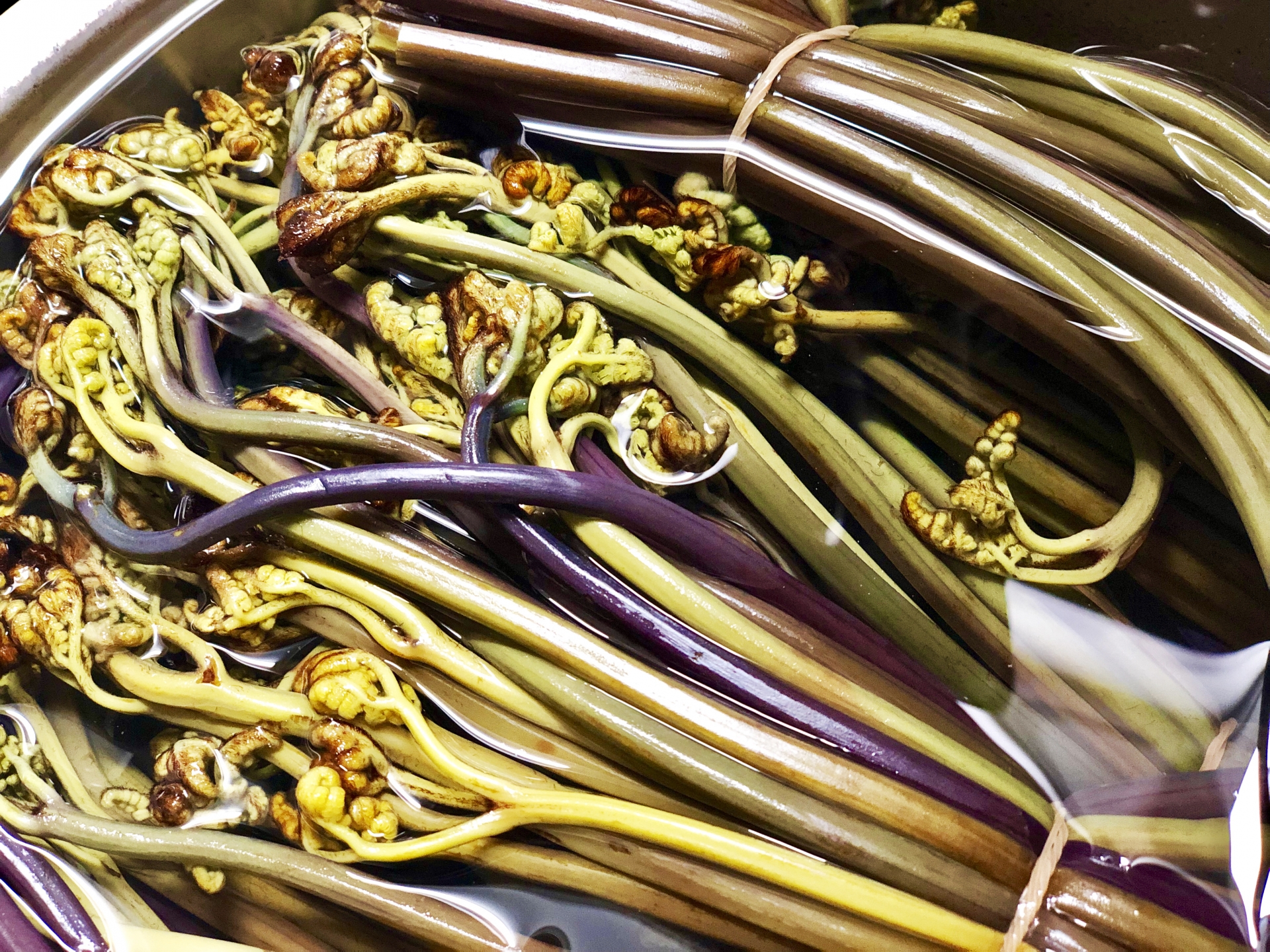 고비는 떫은 맛이 강해, 그릇 속에 꺽은 고비를 두어겹 깔고, 그 위에 나무재를 한줌 뿌린 후 반복해서 여러겹을 깐 다음 물에 뜨지 않도록 돌을 얹어 물을 부어 우려 낸 후 말려서 갈무리해 두었다가 먹으면 좋습니다.
