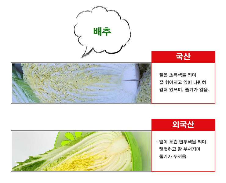 배추 밑동에 흙이 없고 지나치게 깨끗하게 잘려 있다면 중국산일 수 있습니다.