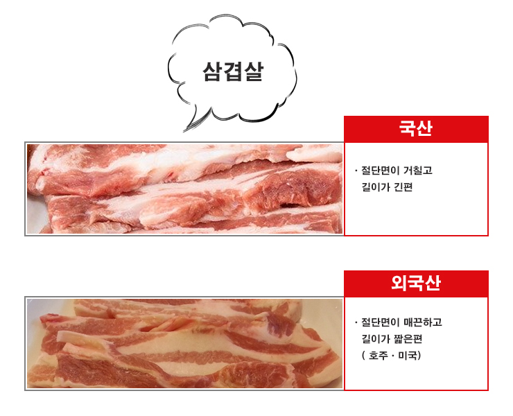 ㆍ 삼겹살 절단면 거칠고 길면 국내산