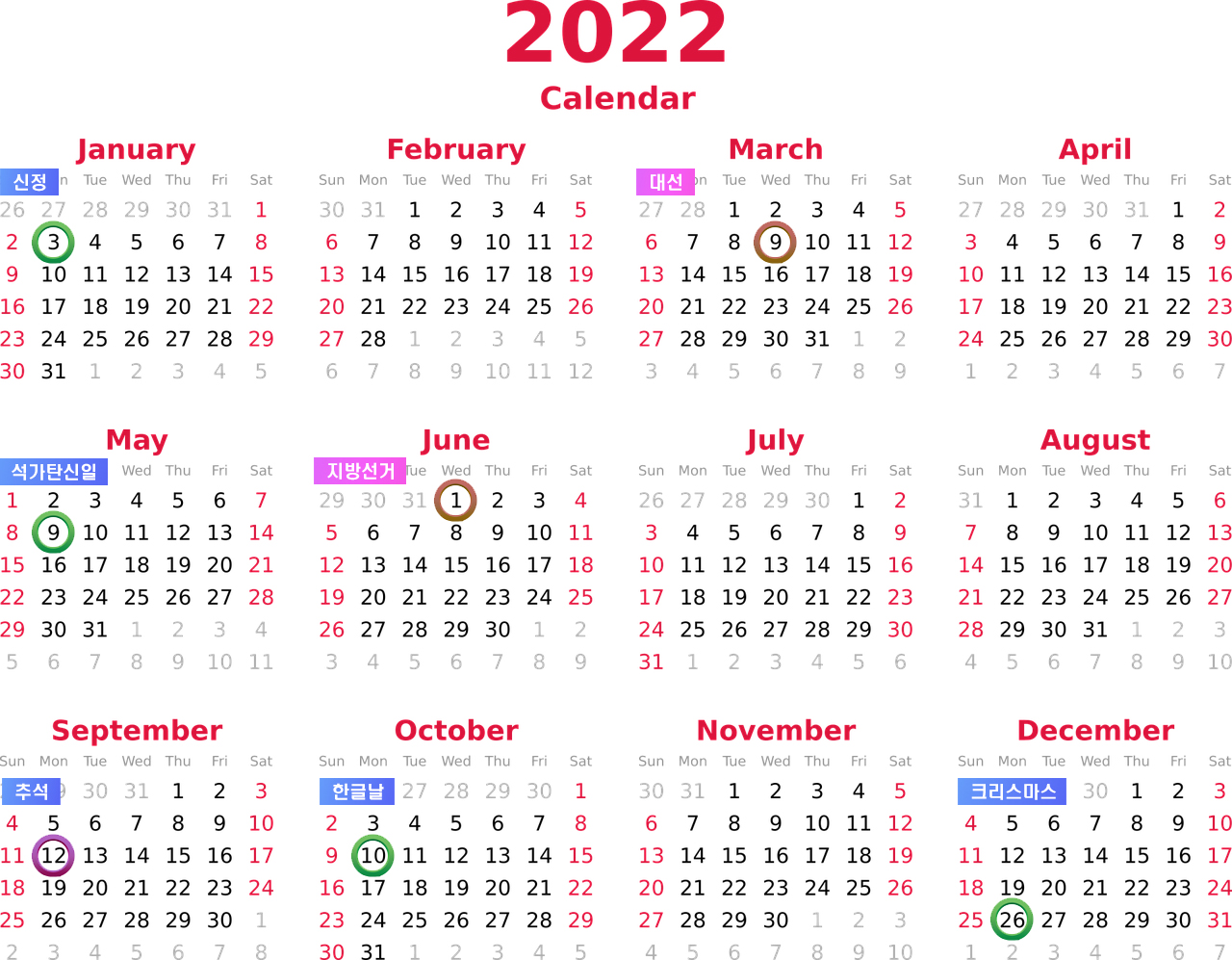 ㆍ [3월] 대선 공휴일 : 3.9(수)