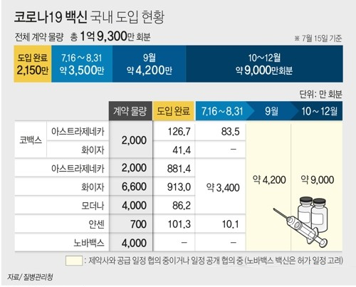 이후 8월에는 약 2천700만회분, 9월에는 약 4천200만회분의 백신이 각각 공급될 예정입니다.