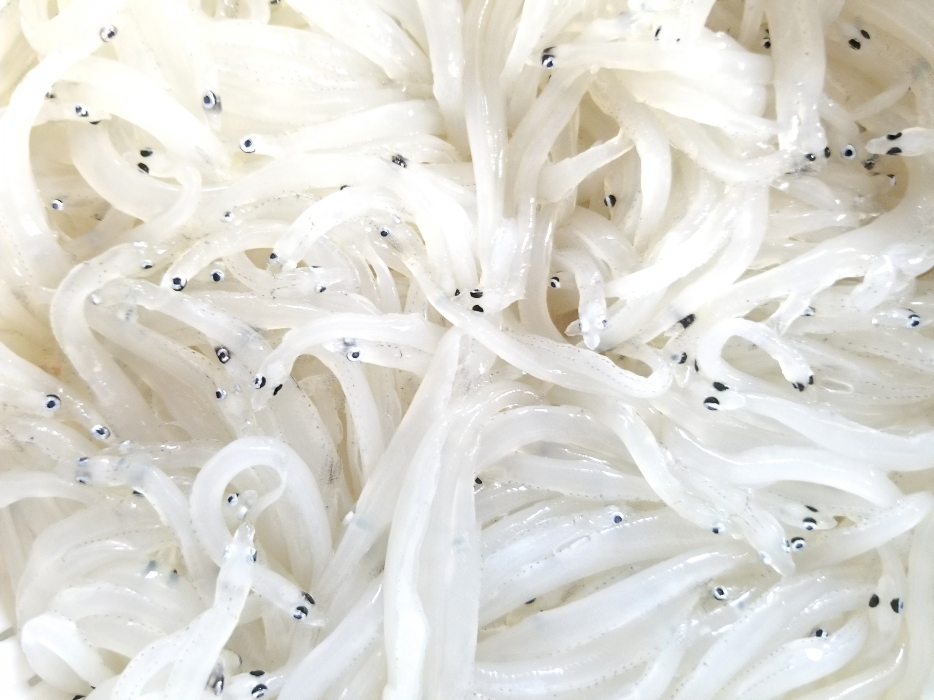 눈이 검고, 배부분과 꼬리지느러미 부근에 몇 개의 검은 점이 있지만 전체 몸은 투명합니다.