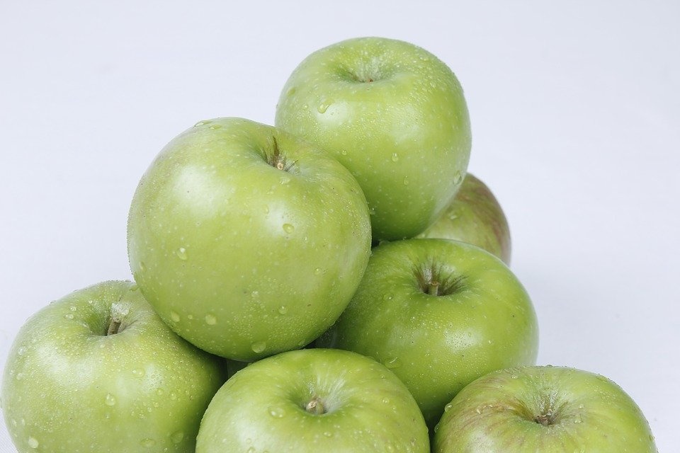 중간 크기 한 개에 120kcal 입니다. 특히, 푸른 사과는 당도가 낮아 다이어트에 좋습니다.