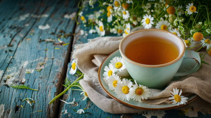 캐모마일 차는 진정 효과가 뛰어난 허브차로, 피부 염증을 줄이고 여드름을 완화하는 데 큰 도움을 줍니다.