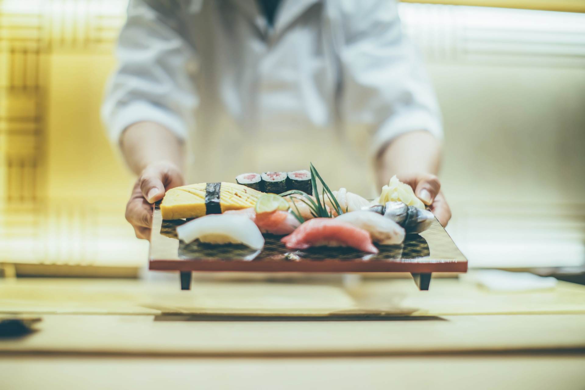 정해진 손님을 받아 일정 부분만 제공하는 만큼 속도 및 손님 개개인의 취향을 기억해야하고 즉석에서 스시를 내어주며 어느 정도 설명을 해주어야 합니다.