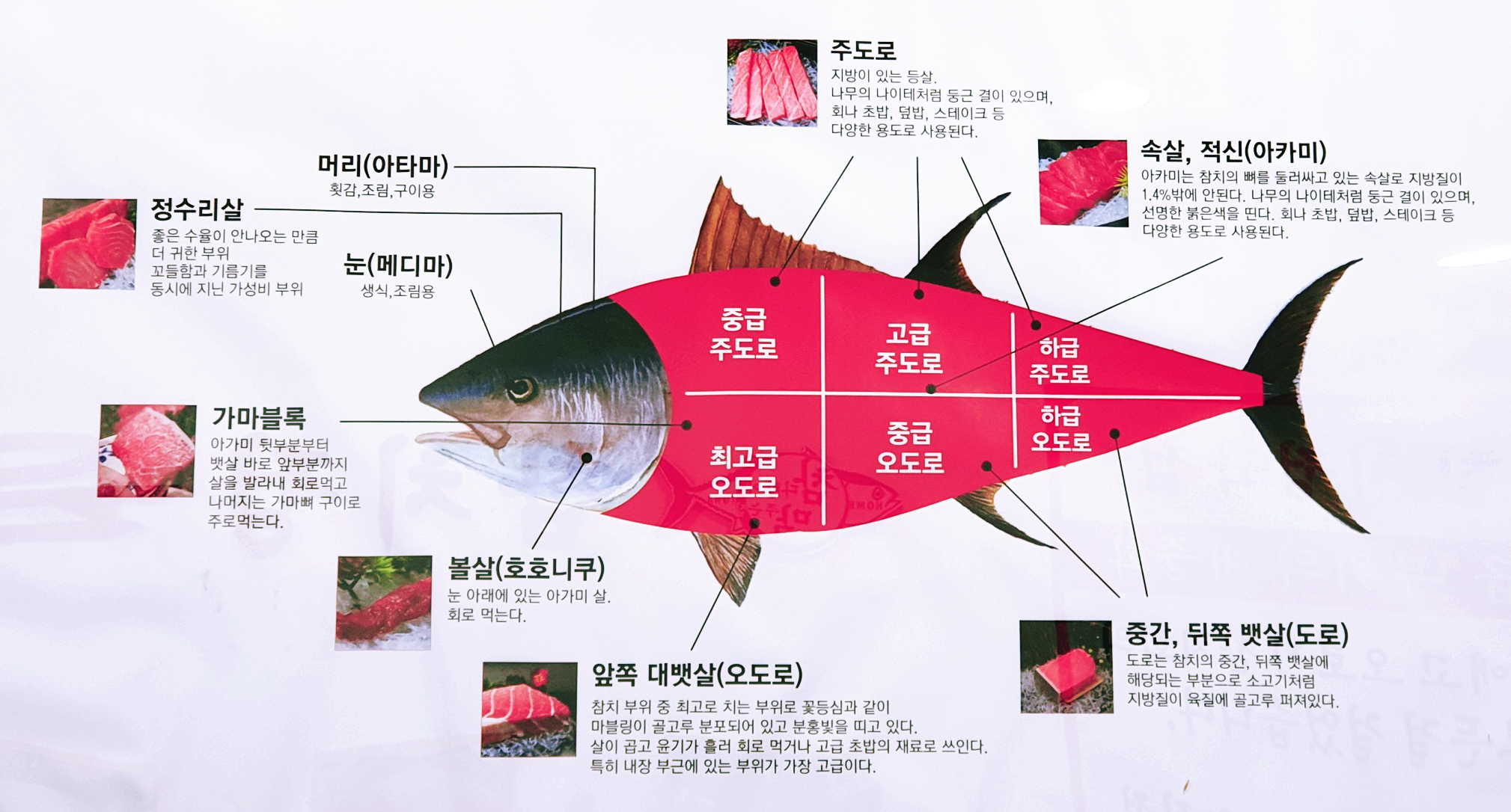 ▶ 특징 : 참치의 뱃살 부위로 지방 함량이 가장 높습니다.